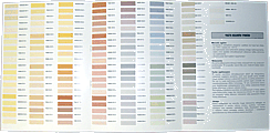 Wzorniki wykonujemy w formie folderów z przyklejonymi paskami farb, w formie wachlarzy lub w układzie segregatorowym z wpinanymi kartami kolorów.